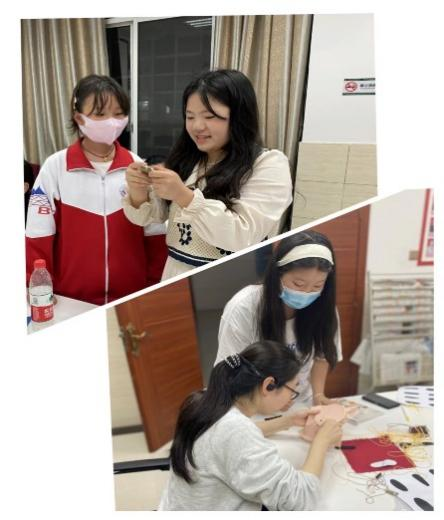 “镜子花样设计”主题创作活动、“发夹自主创设”主题刺绣活动、“胸针个性制作”主题创作活动等等,活动内容丰富,学院教职员工和家属积极参与到每场活动中。